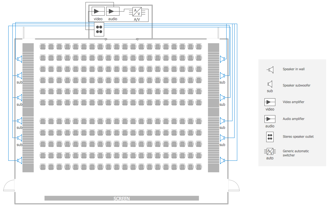 Designing your electric visual plans use the predesigned vector objects from the libraries of Electric and Telecom Plans Solution. There is 6 libraries with 334 objects of electric, telecom, lighting, video and audio, cable TV and other equipment.