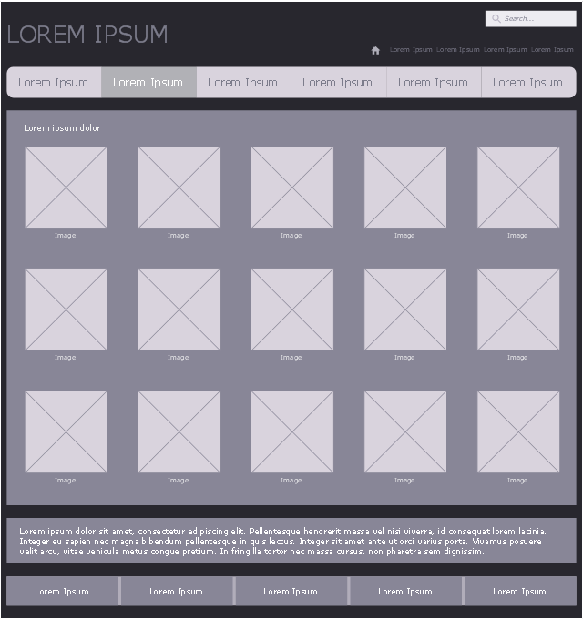 The photo sharing website mockup example "Photo gallery webpage" was created using the ConceptDraw PRO diagramming and vector drawing software extended with the Website Mockup solution from the Software Development area of ConceptDraw Solution Park.