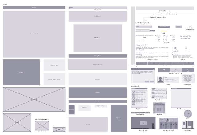 The UI shapes example "Design elements - Content Blocks" is included in the Website Mockup solution from the Software Development area of ConceptDraw Solution Park.