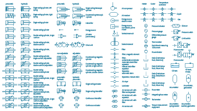 Fluid power symbols, vented reservoir, torque measurement, thermometer, temperature controller, liquid, temperature controller, gas, temperature controller, telescopic, pneumatic, cylinder, single-acting, telescopic, pneumatic, cylinder, double-acting, telescopic, hydraulic, cylinder, single-acting, telescopic, hydraulic, cylinder, double-acting, tachometer, switch, pressure switch, switch, limit switch, single-acting, pneumatic, cylinder, single-acting, intensifier, converting, pneumatic pressure, hydraulic pressure, single-acting, intensifier, converting, pneumatic pressure, single-acting, intensifier, converting, hydraulic pressure, single-acting, hydraulic, cylinder, single-acting actuator, converting, pneumatic pressure, hydraulic pressure, silencer, pneumatic silencer, semi-rotary, actuator, limited angle, rotation, reservoir, pulse counter, pneumatic output signal, pulse counter, electric output signal, pressurized, sealed, hydraulic, reservoir, pressure indicator, pressure, indicator, pressure gauge, pressure, gauge, pneumatic, energy source, pneumatic, drive unit, variable speed, oil tank, manually, drained, separator, valve, filter, manually, drained, separator, valve, lubricator, oil, air, lubricate, liquid temperature controller, liquid level, measuring instrument, hydraulic, energy source, hydraulic, drive unit, variable speed, heat exchanger, apparatus, heating, circulating fluid, heat exchanger, apparatus, cooling, circulating fluid, gas temperature controller, flow, measurement, indicator, flow meter, integrating, flow meter, filter, magnetic element, filter, contamination indicator, filter, energy storage device, accumulator, spring loaded accumulator, energy storage device, accumulator, gas loaded accumulator, energy storage device, accumulator, auxiliary gas bottle, energy storage device, accumulator, energy source, non-electric prime mover, energy source, electric motor, double-acting, pneumatic, cylinder, adjustable, double-acting, pneumatic, cylinder, double-acting, magnetic cylinder, adjustable, double-acting, magnetic cylinder, double-acting, hydraulic, cylinder, adjustable, double-acting, hydraulic, cylinder, double-acting, double-ended, cylinder, differential pressure gauge, pressure, gauge, differential gauge, continuous, intensifier, converting, pneumatic pressure, hydraulic pressure, continuous, actuator, converting, pneumatic pressure, hydraulic pressure, automatically, drained, separator, valve, filter, automatically, drained, separator, valve, air service unit, separator, air service unit, filter, separator, air service unit, filter, air service unit, air receiver, air dryer, air drying, air compressor,