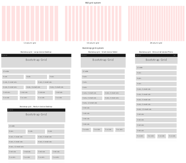 Use these grids to position content and widgets on your web pages using the ConceptDraw PRO diagramming and vector drawing software.