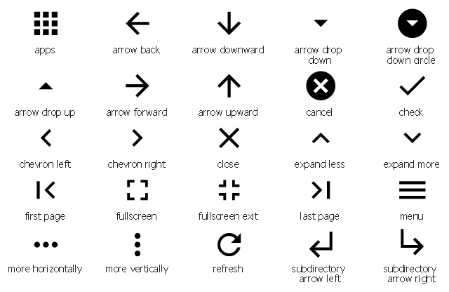 The icons example "Design elements - Android system icons (navigation)" was created using the ConceptDraw PRO diagramming and vector drawing software extended with the "Android user interface" solution from the "Software Development" area of ConceptDraw Solution Park.