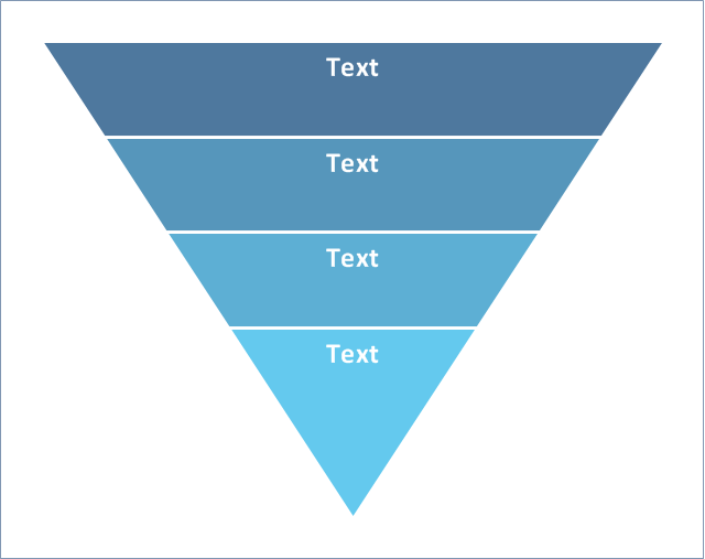 Use this 4-level funnel diagram template to quickly create your own marketing funnel diagrams using the ConceptDraw PRO diagramming and vector drawing software. The 4-level funnel diagram template is included in the Pyramid Diagrams solution from the Marketing area of ConceptDraw Solution Park.