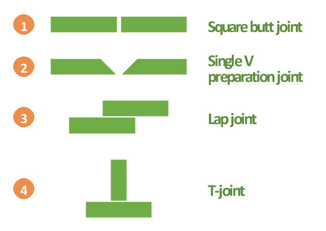 This engineering drawing example was redesigned using the ConceptDraw PRO diagramming and vector drawing software from the Wikimedia Commons file: Common joint types.png.
