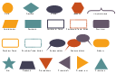 Geometric shapes, triangle up, triangle right, triangle left, triangle down, trapezoid, star, stadium, speech balloons, speech balloon, roundrect frame dotted, roundrect frame, roundrect, rectangular frame dotted, rectangular frame, rectangle, parallelogram, horizontal brace, hexagon, ellipse, diamond, circle,
