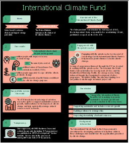 This finance infographic sample was designed on the base of the webpage "Policy paper. International Climate Fund" on the UK Government website. "The International Climate Fund (ICF) is the UK government’s commitment to developing countries to help them address the challenges presented by climate change and benefit from the opportunities." [gov.uk/government/publications/international-climate-fund/international-climate-fund] Contains public sector information licensed under the Open Government Licence v3.0. The finance infographic sample "International Climate Fund" was designed using ConceptDraw PRO software extended with Finanlial Infographics solution from Business Infographic area of ConceptDraw Solution Park.