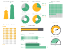 Infographic elements, two columns arrow chart indicator, two bars horizontal bar chart indicator, stickman row pictograph, square chart 10x10 indicator, semi-radial gauge, speedometer gauge, ring chart indicator, donut chart indicator, radial gauge indicator, speedometer indicator, progress bar indicator, discrete horizontal level indicator, pie chart indicator, donut chart indicator, bullet indicator,