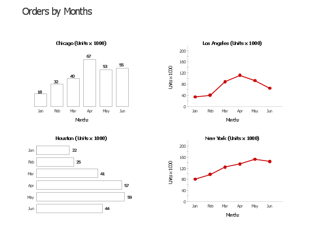 The business performance dashboard example "Orders by months - Digital dashboard" was created using the ConceptDraw PRO diagramming and vector drawing software extended with the Time Series Dashboard solution from the area "What is a Dashboard" of ConceptDraw Solution Park.