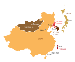 This East Asia map was redesigned from Wikimedia Commons file: Map of East Asia.png. [commons.wikimedia.org/wiki/File:Map_of_East_Asia.png]