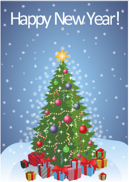 The example "New Year Card - Christmas Tree with Gifts" and the vector stencils library "Christmas and New Year" are included in the Holiday Solution from the Illustration area of ConceptDraw Solution Park.
