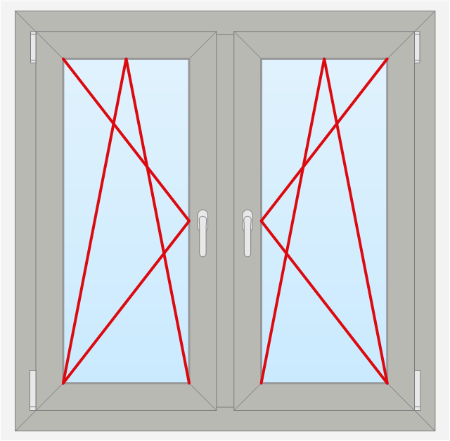 The sketch sample "Tilt and turn window, 2 panel, inside" was designed using ConceptDraw PRO software extended with Tilt and turn windows solution from Building plans area of ConceptDraw Solution Park.