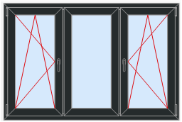 This sketch example shows the inside view of triple panel tilt and turn window.