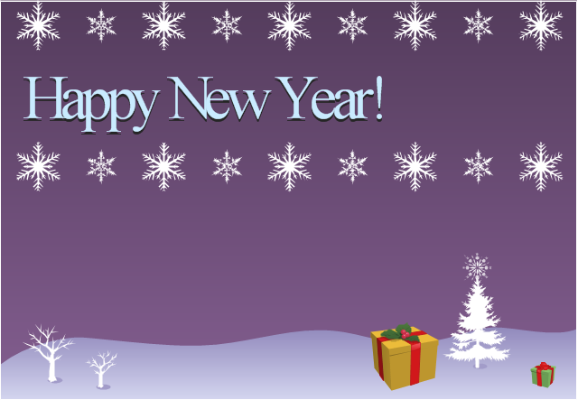 The New Year card template "Christmas snowflakes and presents" for the ConceptDraw PRO diagramming and vector drawing software is included in the Holiday Solution from the Illustration area of ConceptDraw Solution Park.