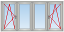 This sketch example shows the inside view of 4 panel tilt and turn window.