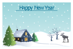 Vector illustration, house under snow, elk, cat, Christmas tree,