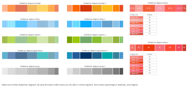 The chart templates example "Design elements - Divided bar diagrams" is included in the Divided Bar Diagrams solution from the Graphs and Charts area of ConceptDraw Solution Park.