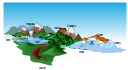 The vector clipart library Geography contains 14 images of geographical features: ocean, forest, river, lake, waterfall, mountains, ravine, volcano, desert, hills, iceberg, trees.