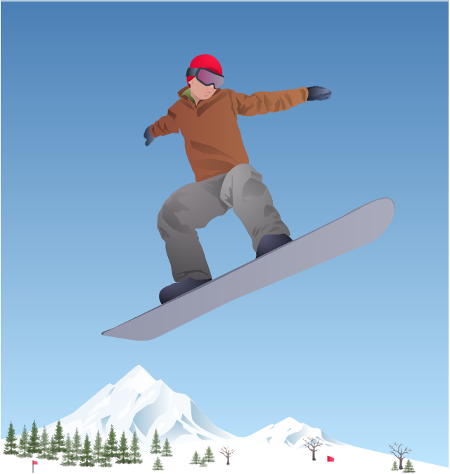 "Snowboarding at the 2014 Winter Olympics in Sochi will be held at the Rosa Khutor Extreme Park. The events will be held between 6 and 22 February 2014. A total of ten snowboarding events will be held at Sochi 2014 which will include parallel giant slalom, snowboard cross, half-pipe, and the new events of parallel slalom and slopestyle. ... Men's slopestyle. Women's slopestyle. Men's halfpipe. Women's halfpipe. Women's snowboard cross. Men's snowboard cross. Men's and Women's parallel giant slalom. Men's and Women's parallel slalom. A total of 252 quota spots are available to athletes to compete at the games. A maximum of 24 athletes can be entered by a National Olympic Committee, with a maximum of 14 men or 14 women. The five different events have different quota amounts allocated to them. Countries are allowed to enter the same athlete into more then one event, further reducing the amount of athletes competing. ... 31 nations are scheduled to participate, with number of athletes in parenthesis." [Snowboarding at the 2014 Winter Olympics. Wikipedia] The vector illustration "Winter Olympics - Snowboard" was created using the ConceptDraw PRO diagramming and vector drawing software extended with the Winter Sports solution. The Winter Sports solution from the Sport area of ConceptDraw Solution Park contains the Sochi 2014 Winter Olimpics sports vector pictograms and clipart libraries and examples of diagrams, illustrations and infographics.
