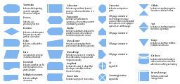 Flowchart notation, terminator, start, end, summing junction, summing, subroutine, predefined process, stored data, data storage, sort, process, action, preparation, or, off page, multiple documents, merge, store, manual loop, manual input, loop limit, internal storage, document, display, delay, decision, database, disk, data, input, output, connector, collate,