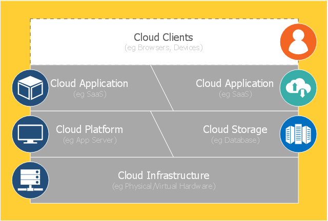 The infographic example "Cloud computing stack" was drawn using ConceptDraw PRO software extended with the Cloud Computing Diagrams solution from the Computer and Networks area of ConceptDraw Solution Park.