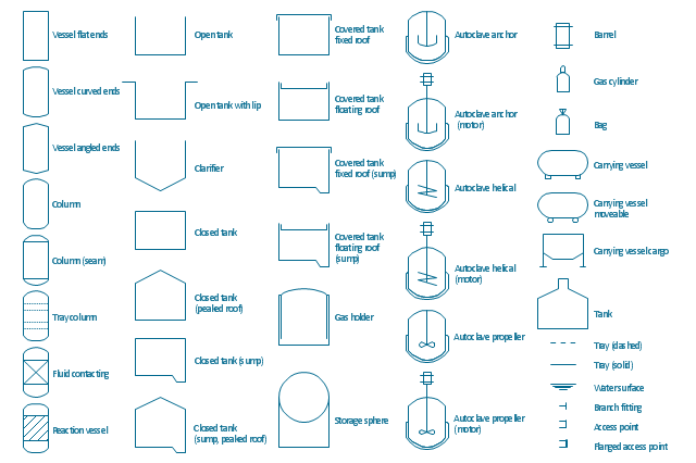 The example "Design elements - Vessels" was created using the ConceptDraw PRO diagramming and vector drawing software extended with the Chemical and Process Engineering solution from the Engineering area of ConceptDraw Solution Park.