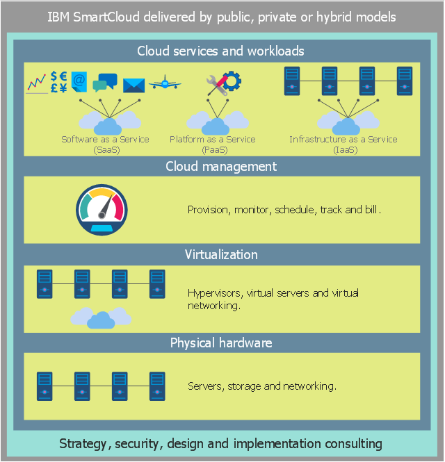 This cloud computing infographic example was drawn on the base of Wikimedia Commons file: SmartCloud model.png. [commons.wikimedia.org/wiki/File:SmartCloud_model.png]