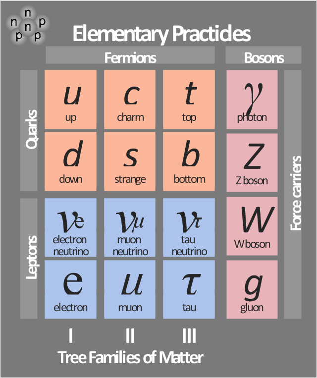 "The Standard Model of particle physics is a theory concerning the electromagnetic, weak, and strong nuclear interactions, which mediate the dynamics of the known subatomic particles. It was developed throughout the latter half of the 20th century, as a collaborative effort of scientists around the world. The current formulation was finalized in the mid-1970s upon experimental confirmation of the existence of quarks. Since then, discoveries of the top quark (1995), the tau neutrino (2000), and more recently the Higgs boson (2013), have given further credence to the Standard Model. Because of its success in explaining a wide variety of experimental results, the Standard Model is sometimes regarded as a "theory of almost everything". Mathematically, the standard model is a quantized Yang–Mills theory." [Standard Model. Wikipedia] The elementary particles matrix diagram example "Standard Model theory" was created using the ConceptDraw PRO diagramming and vector drawing software extended with the Physics solution from the Science and Education area of ConceptDraw Solution Park.