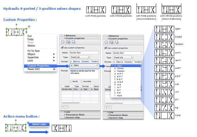 The Mac template "Hydraulic 4-ported 3-position valve" for the ConceptDraw PRO diagramming and vector drawing software is included in the Mechanical Engineering solution from the Engineering area of ConceptDraw Solution Park.