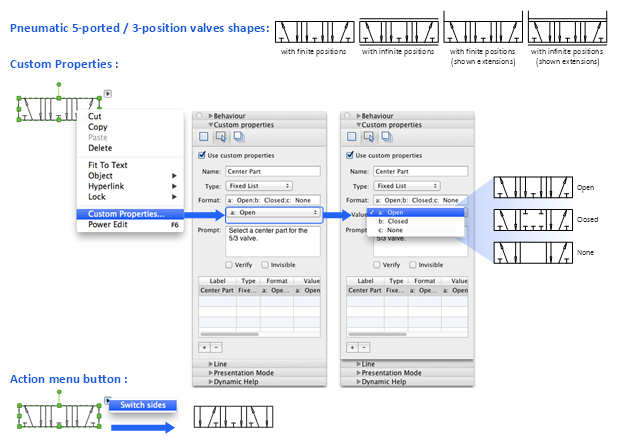 Pneumatic 5-ported 3-position valve template - Mac