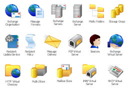 The vector stencils library "Microsoft Exchange" contains 17 symbols of Microsoft Exchange elements for drawing the logical structure diagrams of Active Directory trees.