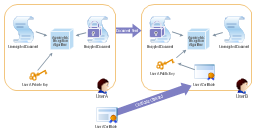 Active Directory diagram, user, recipient policy, lock, key, Licensing site,