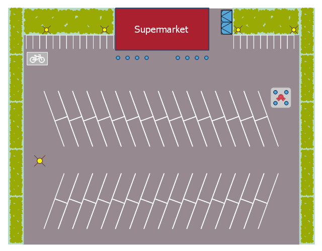 The site plan example "Supermarket parking" was created using the ConceptDraw PRO diagramming and vector drawing software extended with the Site Plans solution from the Building Plans area of ConceptDraw Solution Park.