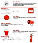 Infographics, smoke detector, manual call point, detector, loudspeaker, fire extinguisher, fire bucket, bell,