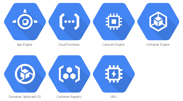 The vector stencils library "Compute" contains 7 Google Cloud Platform icons. Use it to design your GCP architectural diagrams in ConceptDraw PRO software. "Google Compute Engine provides highly customizable virtual machines with best-of-breed features, friendly pay-for-what-you-use pricing, and the option to deploy your code directly or via containers. Google Container Engine lets you use fully-managed Kubernetes clusters to deploy, manage, and orchestrate containers at scale. Google App Engine is a flexible platform-as-a-service that lets you focus on your code, freeing you from the operational details of deployment and infrastructure management." [cloud.google.com/products/compute/] The GCP pictograms example "Design elements - Compute" is included in Google Cloud Platform solution from Computer and Networks area of ConceptDraw Solution Park.