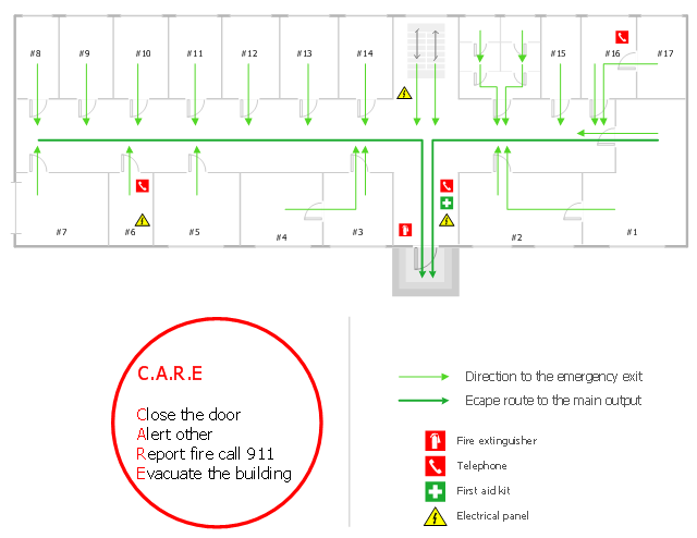 The evacuation plan example was created using the ConceptDraw PRO diagramming and vector drawing software extended with the Fire and Emergency Plans solution from the Building Plans area of ConceptDraw Solution Park.