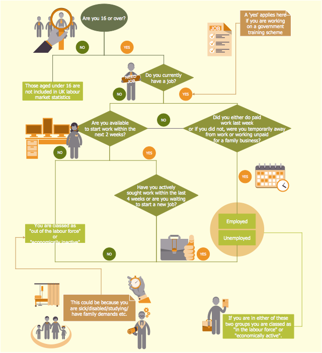 The HR flow chart example "UK labour market categories" was created using the ConceptDraw PRO diagramming and vector drawing software extended with the HR Flowcharts solution from the Management area of ConceptDraw Solution Park.