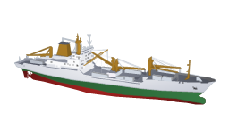 Reefer ships may be categorised into three types: (1) Side-door vessels have water tight ports on the ships hull, which open into a cargo hold. Elevators or ramps leading from the quay serve as loading and discharging access for the forklifts or conveyors. Inside these access ports or side doors, pallet lifts or another series of conveyors bring the cargo to the respective decks. This special design makes the vessels particularly well suited for inclement weather operations as the tops of the cargo holds are always closed against rain and sun. (2) Conventional vessels have a traditional cargo operation with top opening hatches and cranes/derricks. On such ships, when facing wet weather, the hatches need to be closed to prevent heavy rain from flooding the holds. Both above ship types are well suited for the handling of palletized and loose cargo. (3) Refrigerated container ships are specifically designed to carry containerised unit loads where each container has its individual refrigerated unit. These containers are nearly always twenty-foot equivalent units (often called TEU) that are the "standard" container cargo size that are loaded and unloaded at container terminals and aboard container ships. These ships differ from conventional container ships in their design and power generation and electrical distribution equipment. They need provisions made for powering each container's cooling system. Because of their ease of loading and unloading cargo many container ships are now being built or redesigned to carry refrigerated containers. [Reefer ship. Wikipedia]