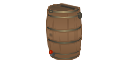 Flat-back woodgrain rain barrel with spigot is used to collect clean soft rainwater. "A rainwater tank (sometimes called a rain barrel in North America in reference to smaller tanks, or a water butt in the UK) is a water tank used to collect and store rain water runoff, typically from rooftops via rain gutters. ... Rainwater tanks are installed to make use of rain water for later use, reduce mains water use for economic or environmental reasons, and aid self-sufficiency. Stored water may be used for watering gardens, agriculture, flushing toilets, in washing machines, washing cars, and also for drinking, especially when other water supplies are unavailable, expensive, or of poor quality, and when adequate care is taken that the water is not contaminated and is adequately filtered." [Rainwater tank. Wikipedia]