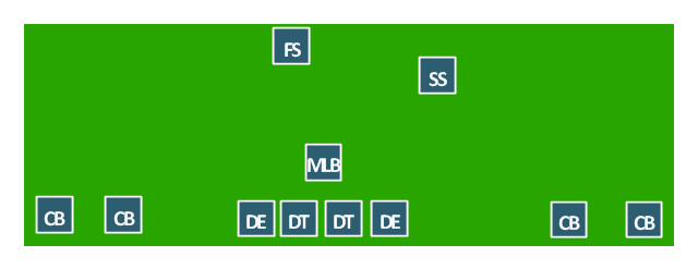 American football positions diagram, safety, S, linebackers, LB, defensive tackle, DT, cornerback, CB,