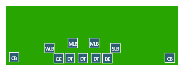 American football positions diagram, linebackers, LB, defensive tackle, DT, cornerback, CB,