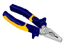 Lineman's, linesman's (US English) or combination pliers or linesman pliers (Canadian English) are a type of pliers used by electricians and other tradesmen primarily for gripping, twisting, bending and cutting wire and cable. Linemen's pliers owe their effectiveness to their plier design, which multiplies force through leverage. Lineman's pliers have a gripping joint at their snub nose and cutting edge in their craw. Some versions include either an additional gripping or crimping device at the crux of the handle side of the pliers' joint. [Lineman's pliers. Wikipedia]