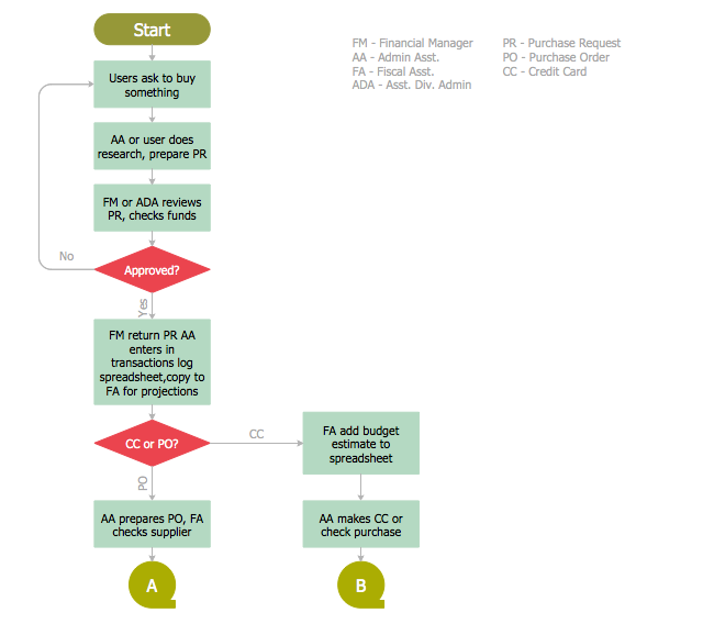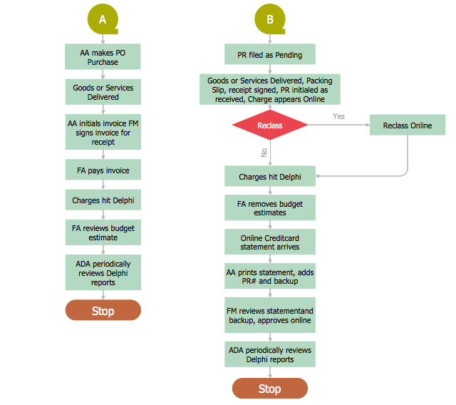 The business process map of procurement process example "Procurement process mapping" was created using the ConceptDraw PRO software extended with the Accounting Flowcharts solution from the Finance and Accounting area of ConceptDraw Solution Park.