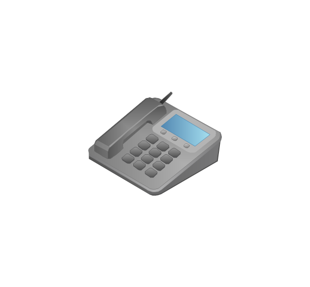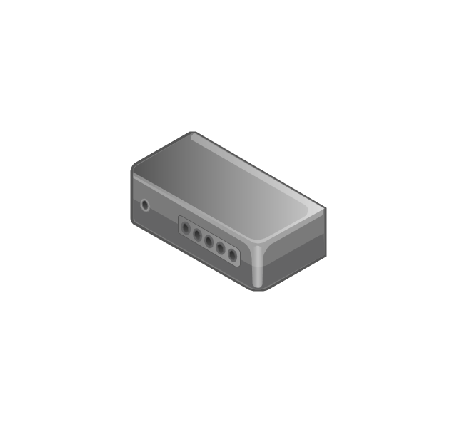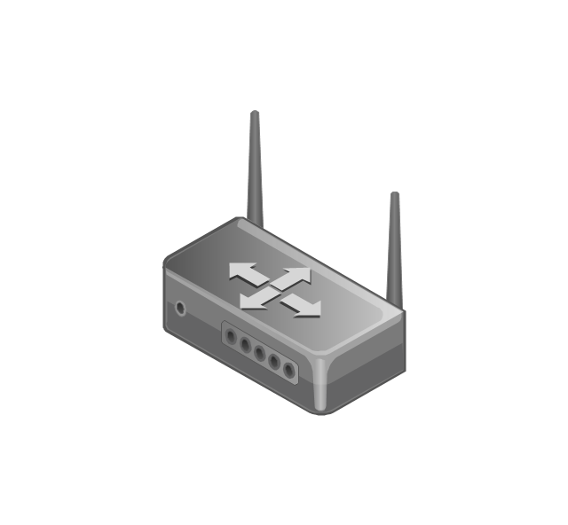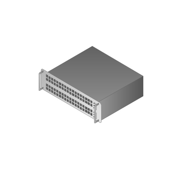The vector stencils library "Computers and network isometric" contains 56 3D clipart images of computer and network devices and equipment for drawing network diagrams.