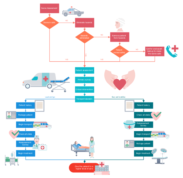 The flowchart example "Emergency medical responder process flow" was designed using ConceptDraw PRO software extended with Healthcare Workflow Diagrams solution from Business Processes area of ConceptDraw Solution Park.