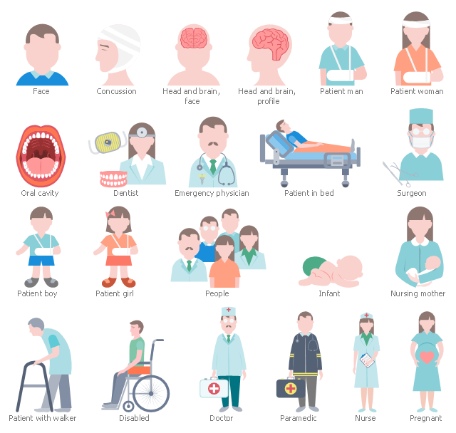 The medical specialty icon set example "Design elements - Healthcare people" is included in Healthcare Workflow Diagrams solution from Business Processes area of ConceptDraw Solution Park.