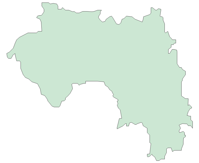 "Guinea, officially the Republic of Guinea, is a country in West Africa. ... Guinea shares its northern border with Guinea-Bissau, Senegal, and Mali, and its southern border with Sierra Leone, Liberia, and Ivory Coast. The nation forms a crescent as it curves from its western border on the Atlantic Ocean toward the east and the south." [Guinea. Wikipedia]