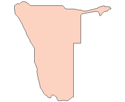 "Namibia, officially the Republic of Namibia, is a country in southern Africa whose western border is the Atlantic Ocean. It shares land borders with Angola and Zambia to the north, Botswana to the east and South Africa to the south and east. Although it does not border Zimbabwe, less than 200 metres of riverbed (essentially the Zambia/Botswana border) separates them at their closest points." [Namibia. Wikipedia]