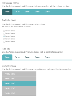 Menus, tabs, radio buttons, vertical menu, tab set, tab bar, radio buttons, radio button, horizontal menu,