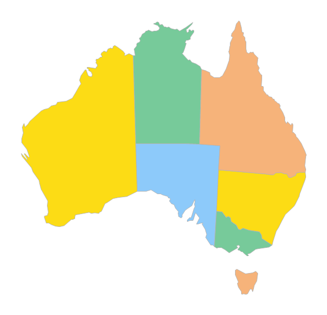The vector stencils library "Australia" contains 10 Australian states and territories, and New Zealand map contours for drawing thematic maps of Australia and New Zealand. Use it for visual representation of geospatial information, statistics and quantitative data.