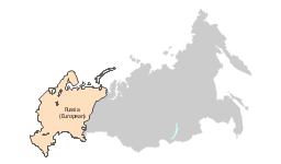 "European Russia (also Western Russia or Central Russia) refers to the Western areas of Russia that lie within Europe, comprising roughly 3,960,000 square kilometres (1,528,560 mi2) and spanning across 38% of Europe. Its eastern border is defined by the Ural Mountains and in the south, it is defined by the border with Kazakhstan. This area includes Moscow and Saint Petersburg, the two largest cities in Russia." [European Russia. Wikipedia]